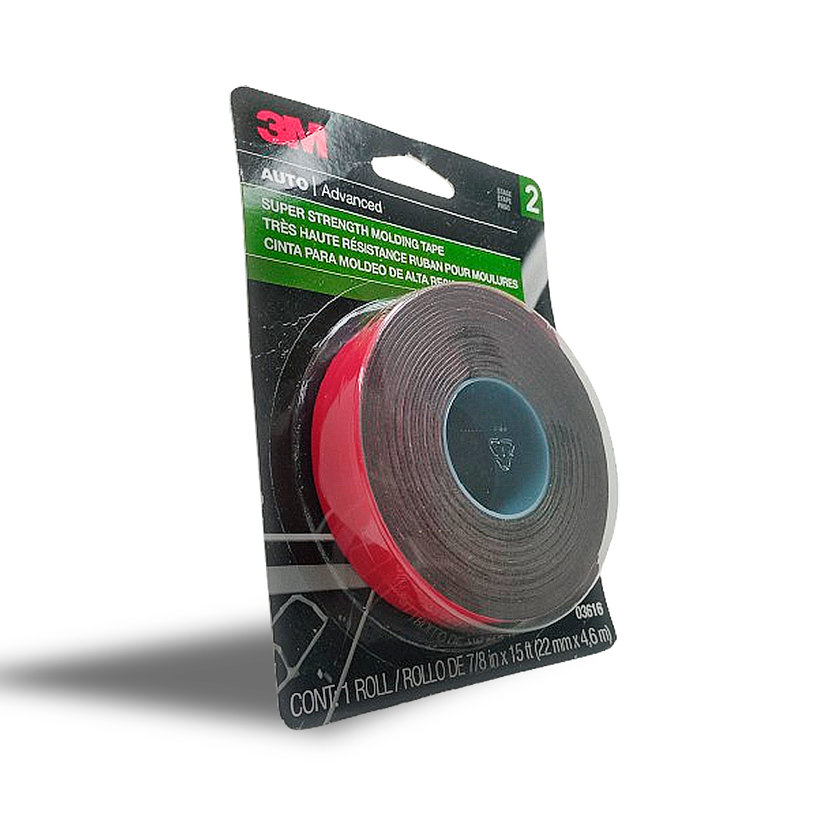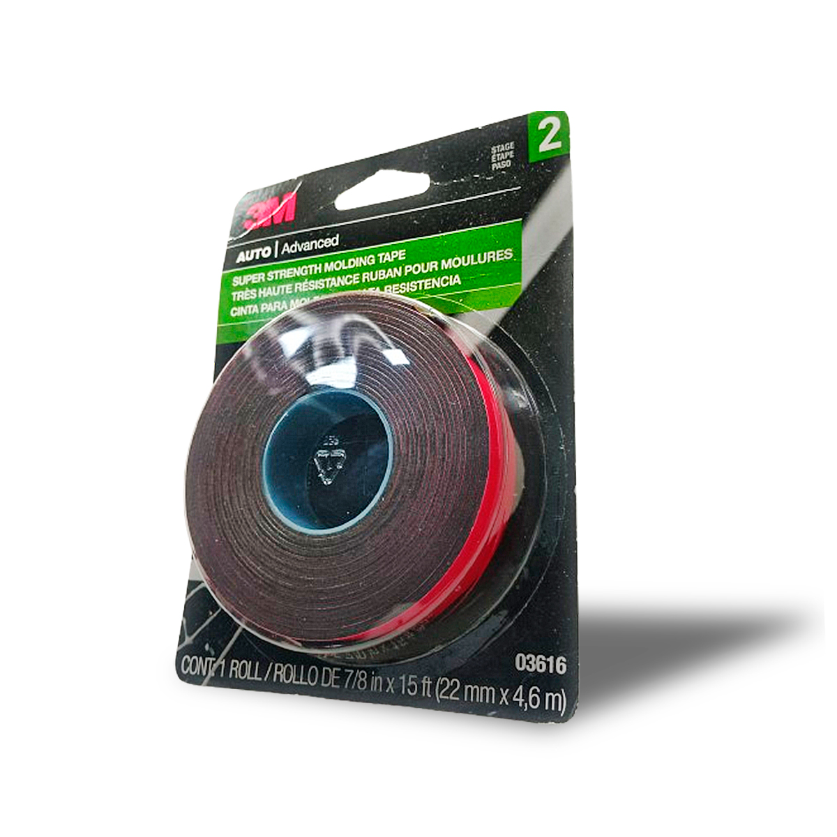 La Cinta de Molduras Superresistente 3M™ es ideal para fijar de forma permanente molduras laterales y embellecedores a sus vehículos, aumentando su protección y valor a largo plazo. Utiliza la misma tecnología de unión elástica empleada en aviones y rascacielos para fijar molduras de carrocería, embellecedores y emblemas a su vehículo. Esta cinta cuenta con un adhesivo extremadamente fuerte y es fácil de usar: simplemente retire el protector y aplíquela.