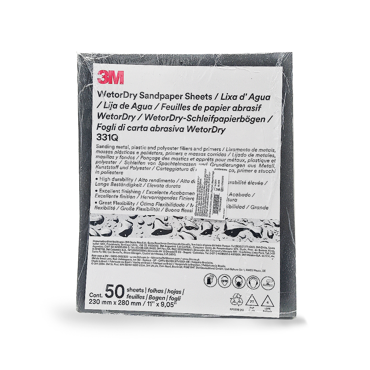 Fabricadas con mineral de óxido de aluminio, las Lijas al Agua 331Q son duraderas y flexibles, facilitando el uso durante el lijado al agua en la reparación automotriz. Tienen tratamiento de impermeabilización en el papel, que también es resistente a desgranamientos y quiebres. La Lija al Agua 331Q está hecha con materias primas especialmente desarrolladas para aplicaciones húmedas en superficies que requieren desbaste y acabado.