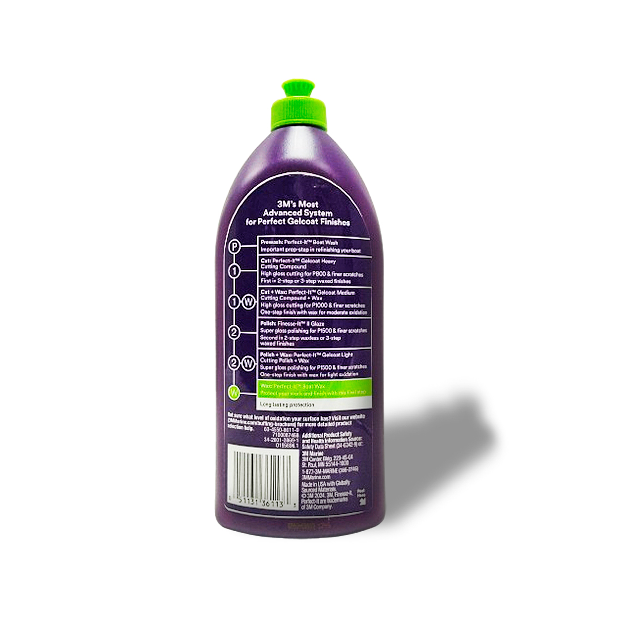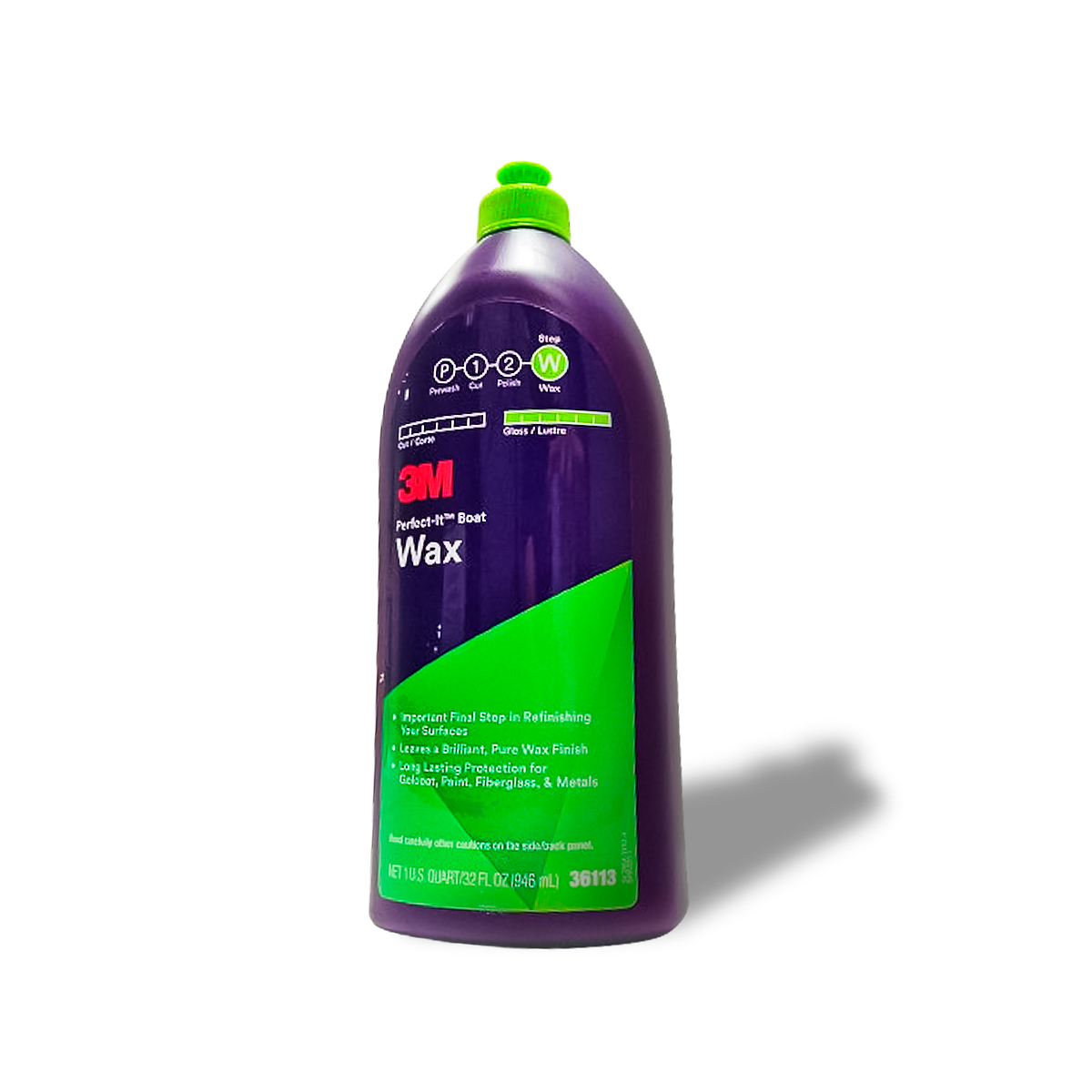 La cera para embarcaciones 3M™ Perfect-It™ es el paso final para lograr un acabado marino verdaderamente profesional. Su mezcla de cera de carnauba brasileña pura, siliconas, polímeros y resinas aporta un brillo extraordinario y proporciona durabilidad a la intemperie. Su fórmula líquida es fácil de aplicar y retirar, incluso en superficies calientes, y es segura para gelcoat, pintura, fibra de vidrio y metal.