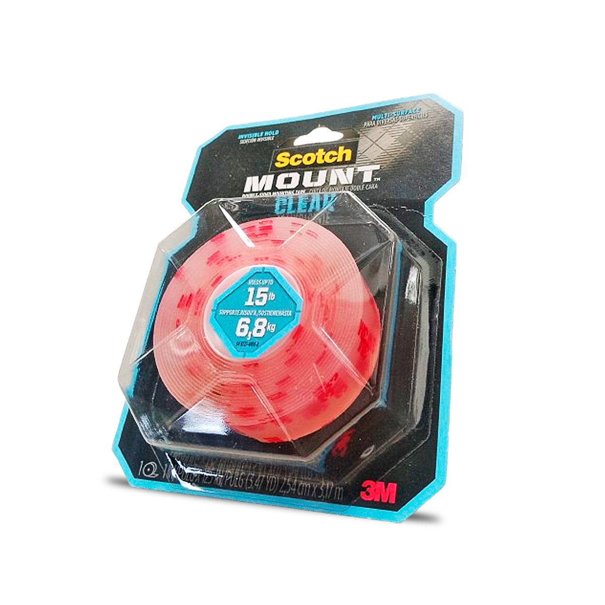 La Cinta de Montaje Doble Cara Scotch-Mount™ Transparente, cuenta con adhesivo de resistencia industrial 3M™. Con una capacidad de hasta 6.8 kg, esta cinta invisible se puede usar en interiores y es ideal sobre vidrio, metal, baldosas de cerámica y acrílico cuando desea resaltar lo que está colgando y no cómo está colgado.