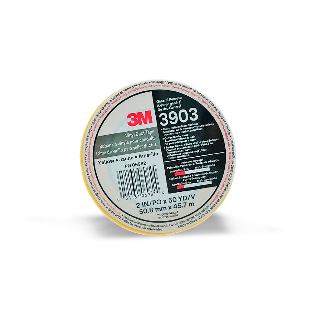 a cinta adhesiva de vinilo 3M™ 3903 es una cinta multiusos, rasgable a mano, con adhesivo de goma y reverso de vinilo en relieve. Es ideal para diversos usos, como reparaciones temporales, identificación, contraste, decoración, fijación de cableado, agrupamiento, sellado, sujeción, protección y otras aplicaciones que requieren resistencia a la humedad.