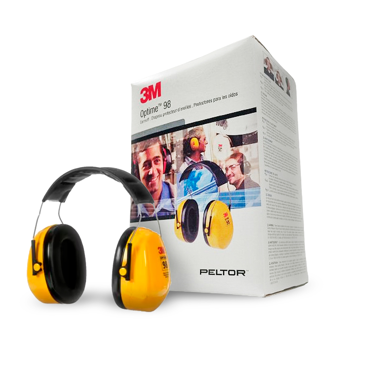 3M™ Peltor™ Optime™ 98 son orejeras versátiles para colocar sobre la cabeza que cuentan con una diadema de acero inoxidable para una fuerza constante y una protección auditiva eficaz.