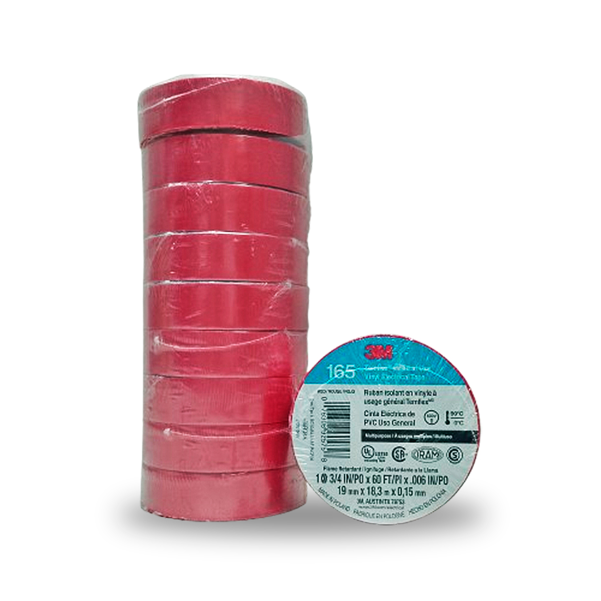 La cinta eléctrica de vinilo 3M™ Temflex™ 165 es una cinta aislante de vinilo multiuso de buena calidad de 0,15 mm (6 mil) de grosor. Tiene una magnífica resistencia a la humedad y a condiciones meteorológicas variables. La cinta está fabricada con cloruro de polivinilo (PVC), que es un material retardante de llama y adaptable. La cinta 3M Temflex 165 proporciona una magnífica protección mecánica con el volumen mínimo. Es una «cinta aislante» homologada por UL y certificada por CSA. No se utilizan disolventes en el proceso de fabricación.