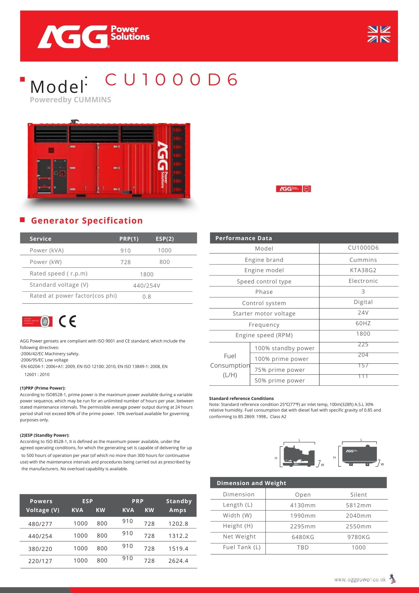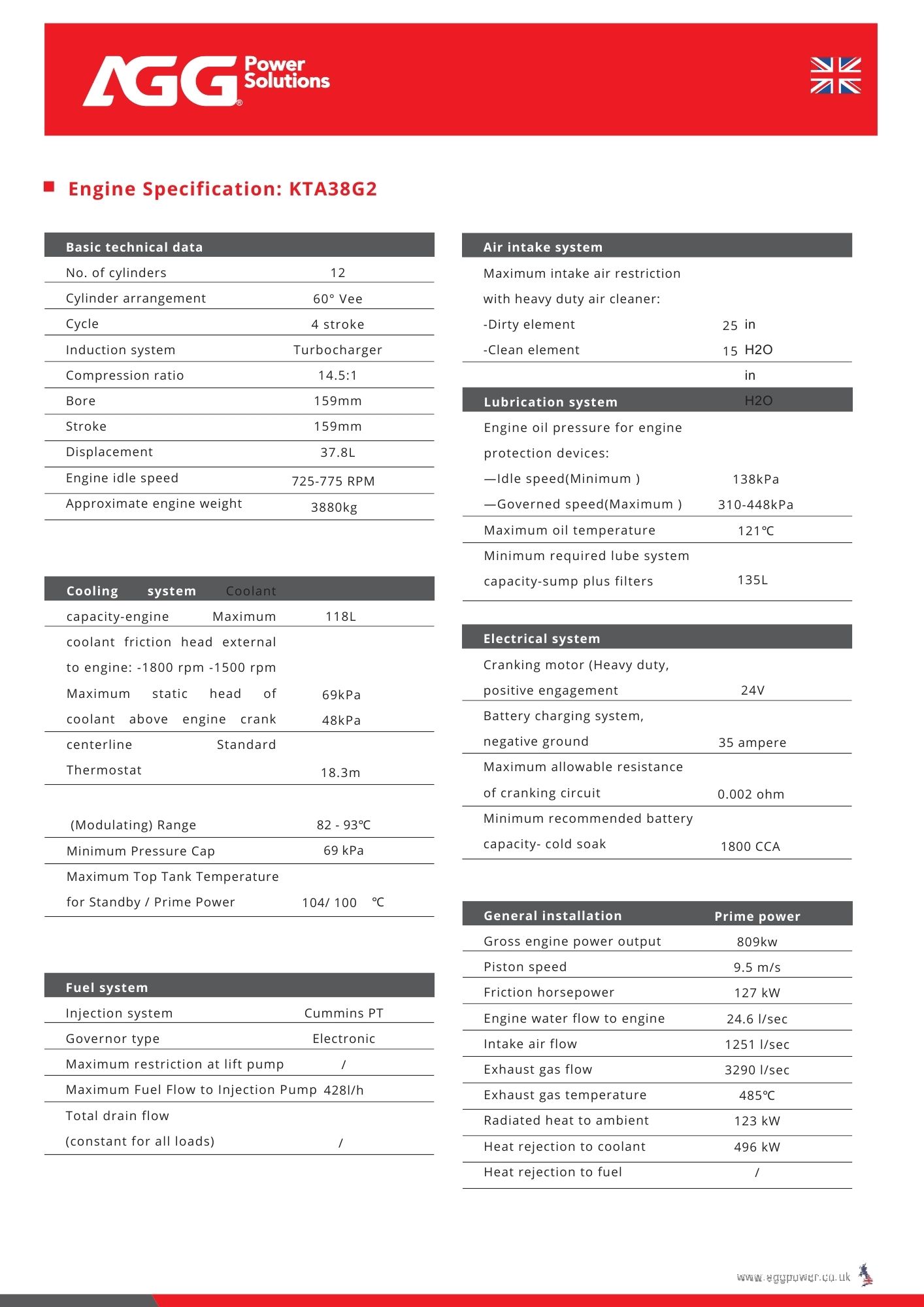 AGG Power Solutions, es una empresa multinacional de origen inglés, enfocada en el diseño, manufactura y distribución de sistemas de generadores y soluciones avanzadas de energía. AGG fabrica sus propios motores AGG y mantiene asociación comercial con Cummins, Perkins y Volvo entre otras. Todos los generadores cuentan con 1 año de garantía o 1.500 horas de uso con respaldo en repuestos, kit de mantenimiento y posventa.