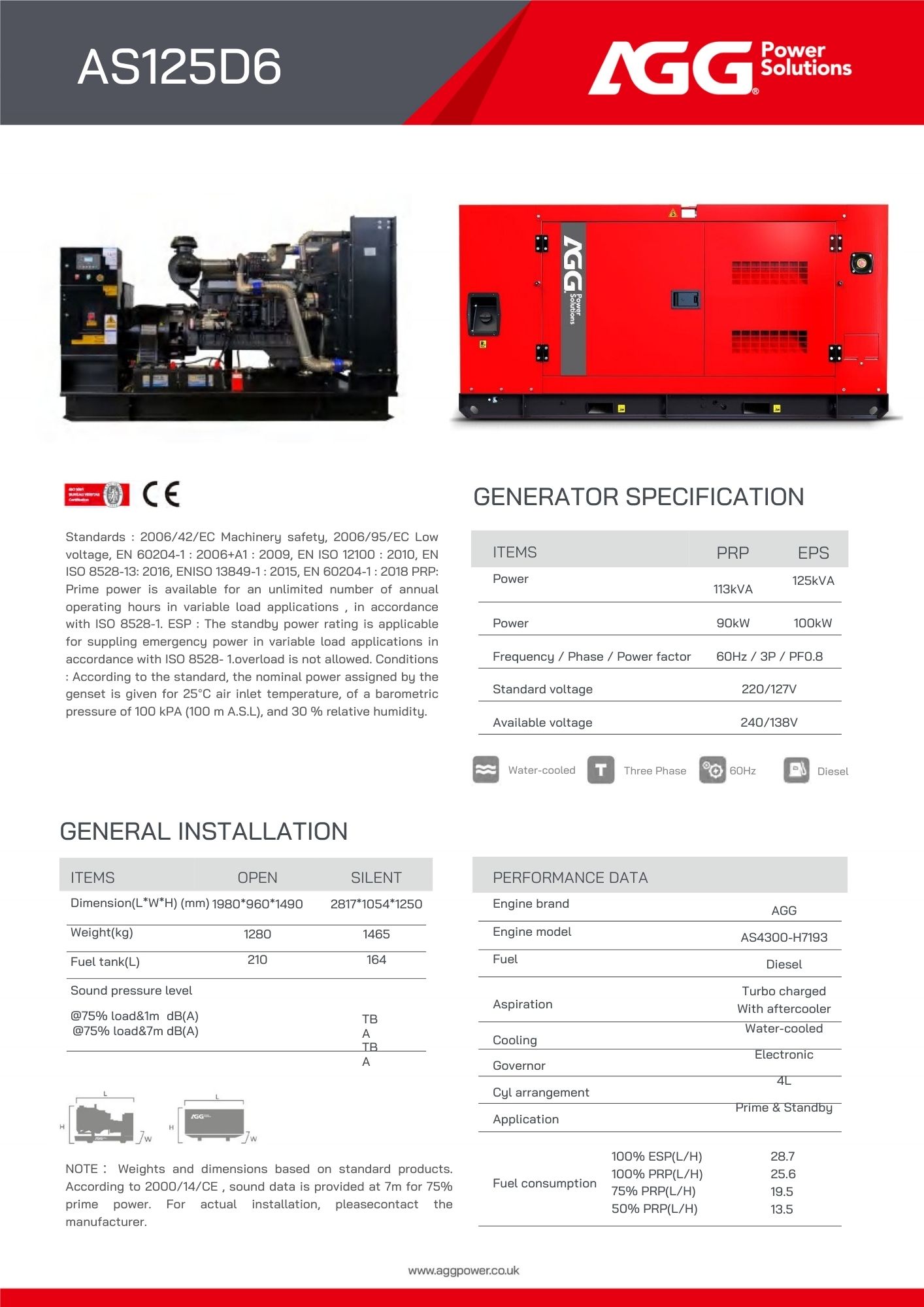 AGG Power Solutions, es una empresa multinacional de origen inglés, enfocada en el diseño, manufactura y distribución de sistemas de generadores y soluciones avanzadas de energía. AGG fabrica sus propios motores AGG y mantiene asociación comercial con Cummins, Perkins y Volvo entre otras. Todos los generadores cuentan con 1 año de garantía o 1.500 horas de uso con respaldo en repuestos, kit de mantenimiento y posventa.