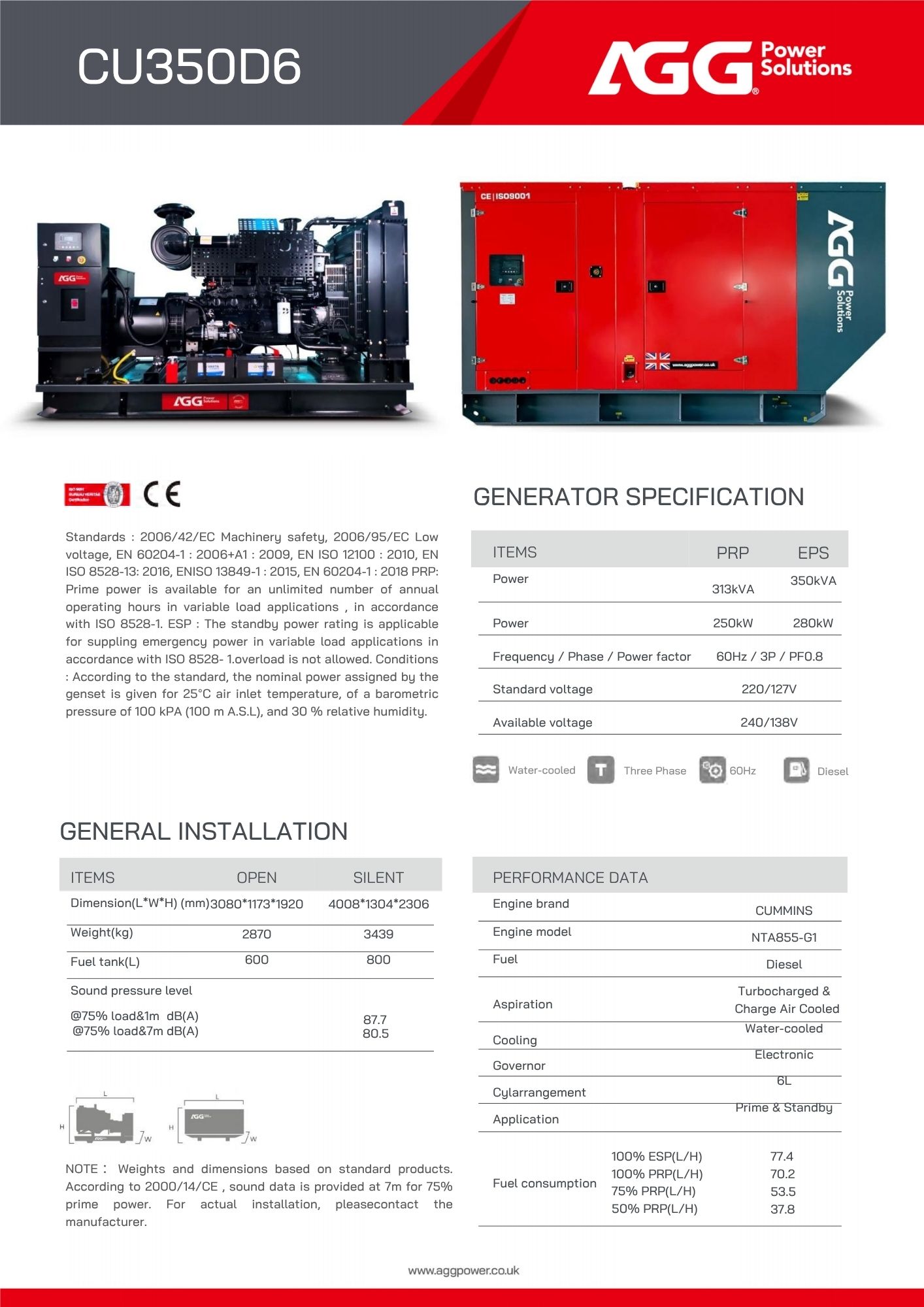 AGG Power Solutions, es una empresa multinacional de origen inglés, enfocada en el diseño, manufactura y distribución de sistemas de generadores y soluciones avanzadas de energía. AGG fabrica sus propios motores AGG y mantiene asociación comercial con Cummins, Perkins y Volvo entre otras. Todos los generadores cuentan con 1 año de garantía o 1.500 horas de uso con respaldo en repuestos, kit de mantenimiento y posventa.