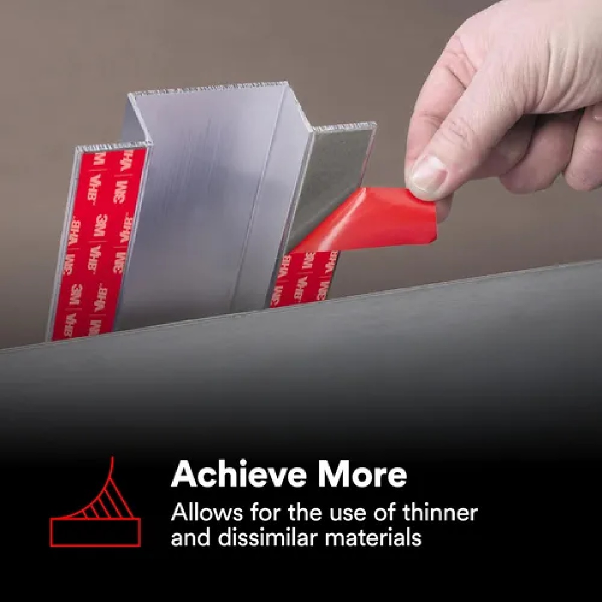 La familia RP+ de cintas 3M™ VHB™ utiliza adhesivo acrílico modificado en ambas caras de un núcleo de espuma adhesiva conformable. La combinación de resistencia, conformabilidad y adhesión hace de esta familia una de las cintas 3M™ VHB™ más capaces y completas. Está específicamente diseñada para una buena adhesión a plásticos, metales y vidrio de energía superficial alta y media. Entre las aplicaciones de esta cinta se incluyen la fijación de rigidizadores a paneles, señalización y fijación de barras de muntin decorativas a ventanas.